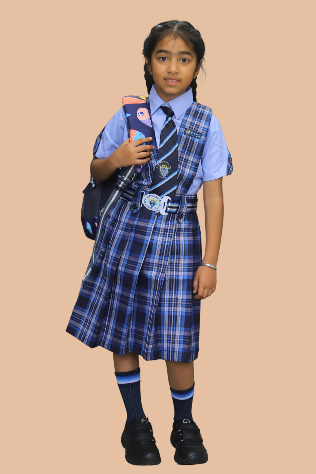 The St. Teresa Convent School uniform is meticulously designed to offer an ideal blend of elegance, comfort, and durability, perfectly suited for the academic and extracurricular needs of students. Made from premium, breathable fabrics, it ensures that students remain comfortable throughout their school day, whether they are focused in class or participating in outdoor activities. The uniform’s refined design exudes a sense of discipline and sophistication, while also promoting a feeling of unity and pride within the school community. With attention to every detail, the uniform is built to withstand the demands of daily wear, providing students with practicality, style, and lasting quality. It not only ensures comfort but also fosters a sense of belonging and pride, reinforcing the values of St. Teresa Convent School and its commitment to excellence. Through this thoughtfully crafted uniform, the school upholds its tradition of nurturing confident, well-rounded individuals ready to embrace each day with enthusiasm and purpose.